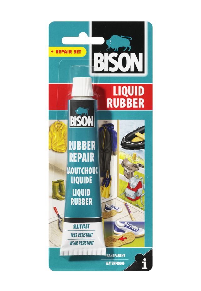 Ideal for glueing, filling and sealing of rubber, leather, textile, neoprene, various synthetics (such as Hypalon®), wood, metal or ceramics. Also suitable for repairing (sports) shoes, (soles and heels), boots, gloves, slippers, (hockey) sticks, inflatable objects (such as boats, air mattresses) made of rubber or soft PVC, rainwear, travel bags, wetsuits, diving gear, tents, (horse) saddles, decorative materials, headlights and to reinforce stitched seams. Also suitable for filling joints and gaps.
